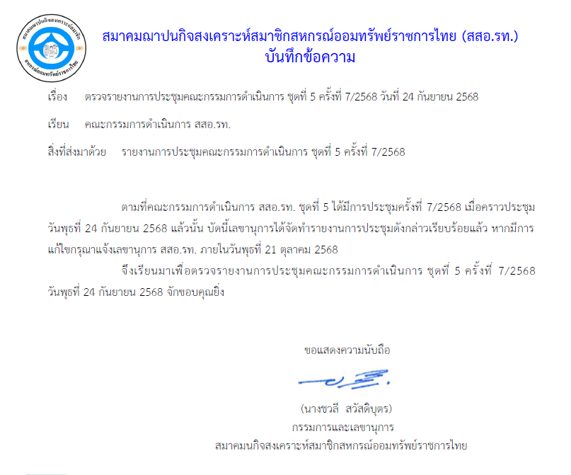 เรียน คณะกรมการดำเนินการ สสอ.รท. ไม่มีการแก้ไขขอแก้ไขเพิ่มเติม